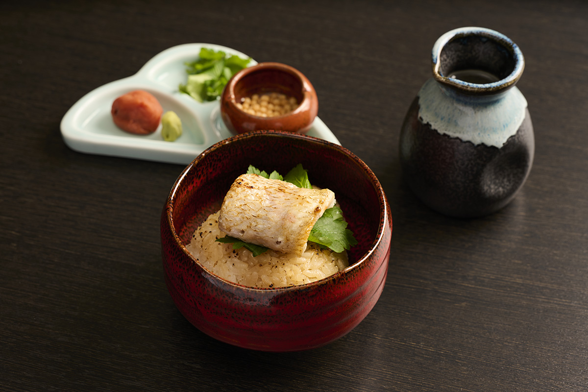 - 【締】焼きおにぎりの特製ごま出汁茶漬け: 香ばしく炙ったのどぐろを、濃厚なごま出汁で。最後の一滴まで北陸の海の幸を堪能。